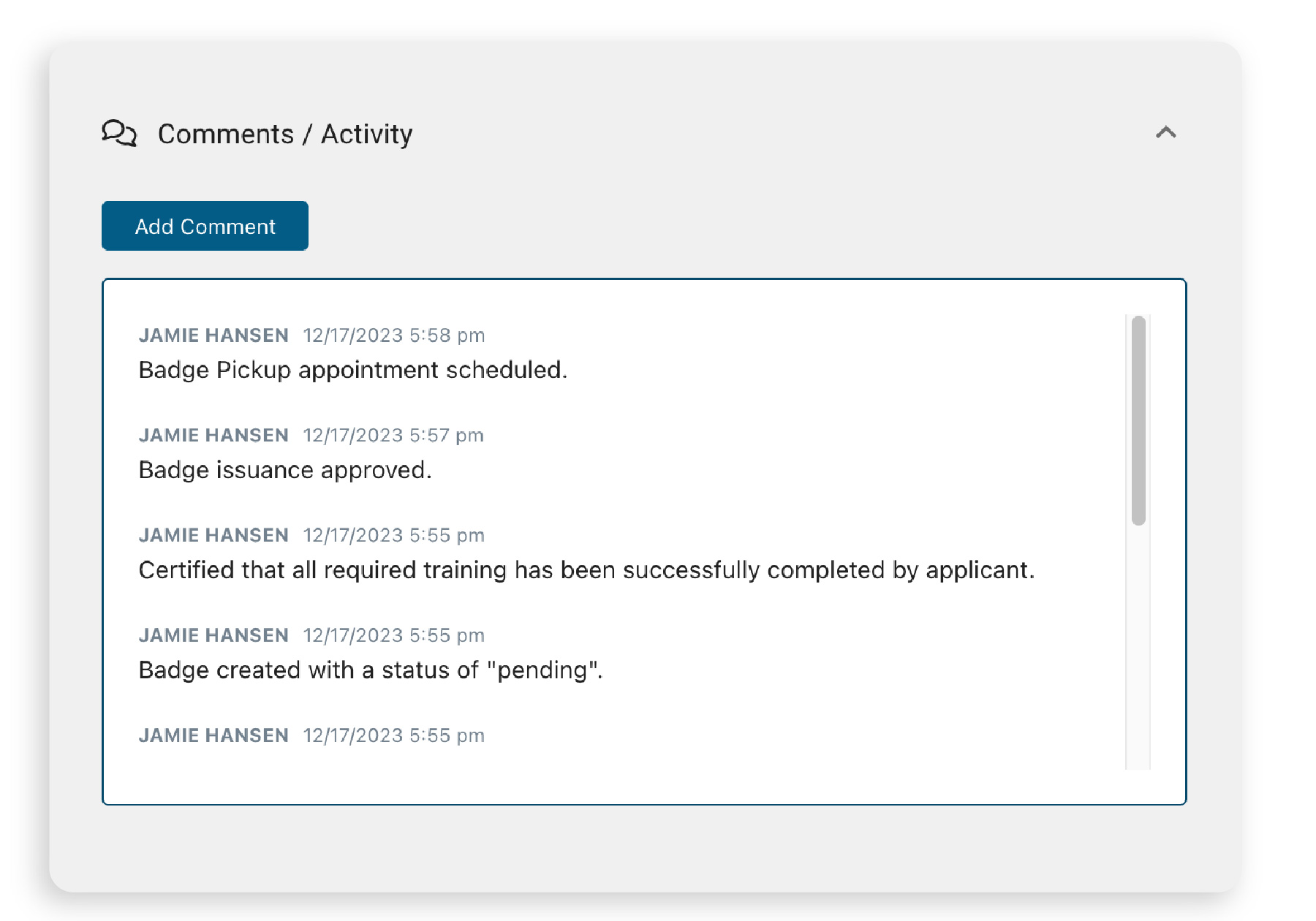 comments and activity