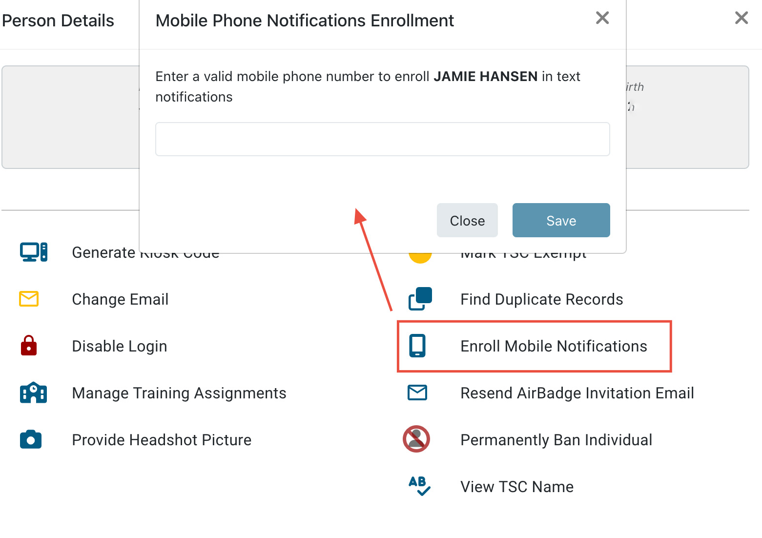 A mobile phone number may be used in other systems beyond AirBadge, therefore the badge office should make updates to mobile numbers saved in AirBadge.